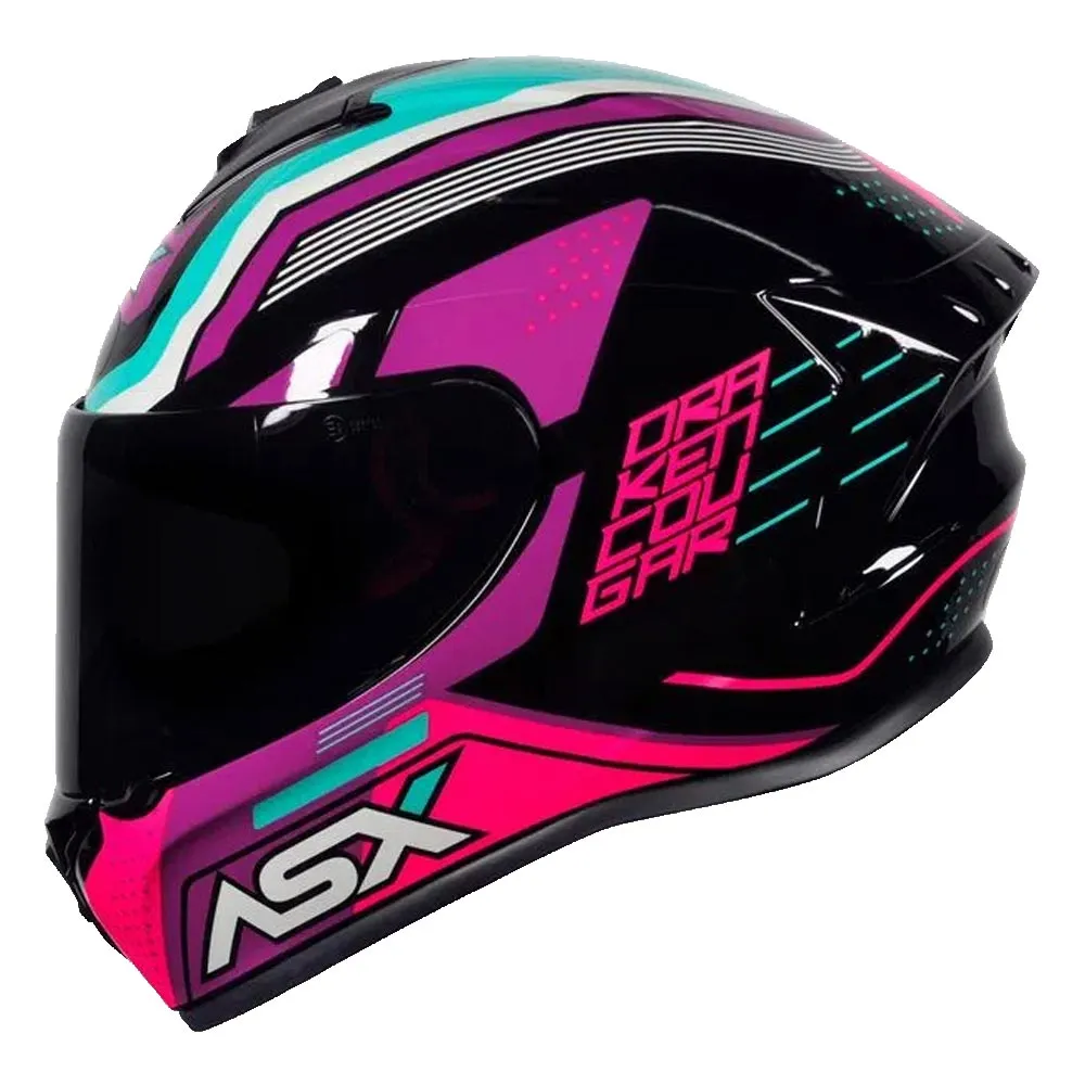 Capacete ASX Draken Cougar Preto/Rosa/Tiffany