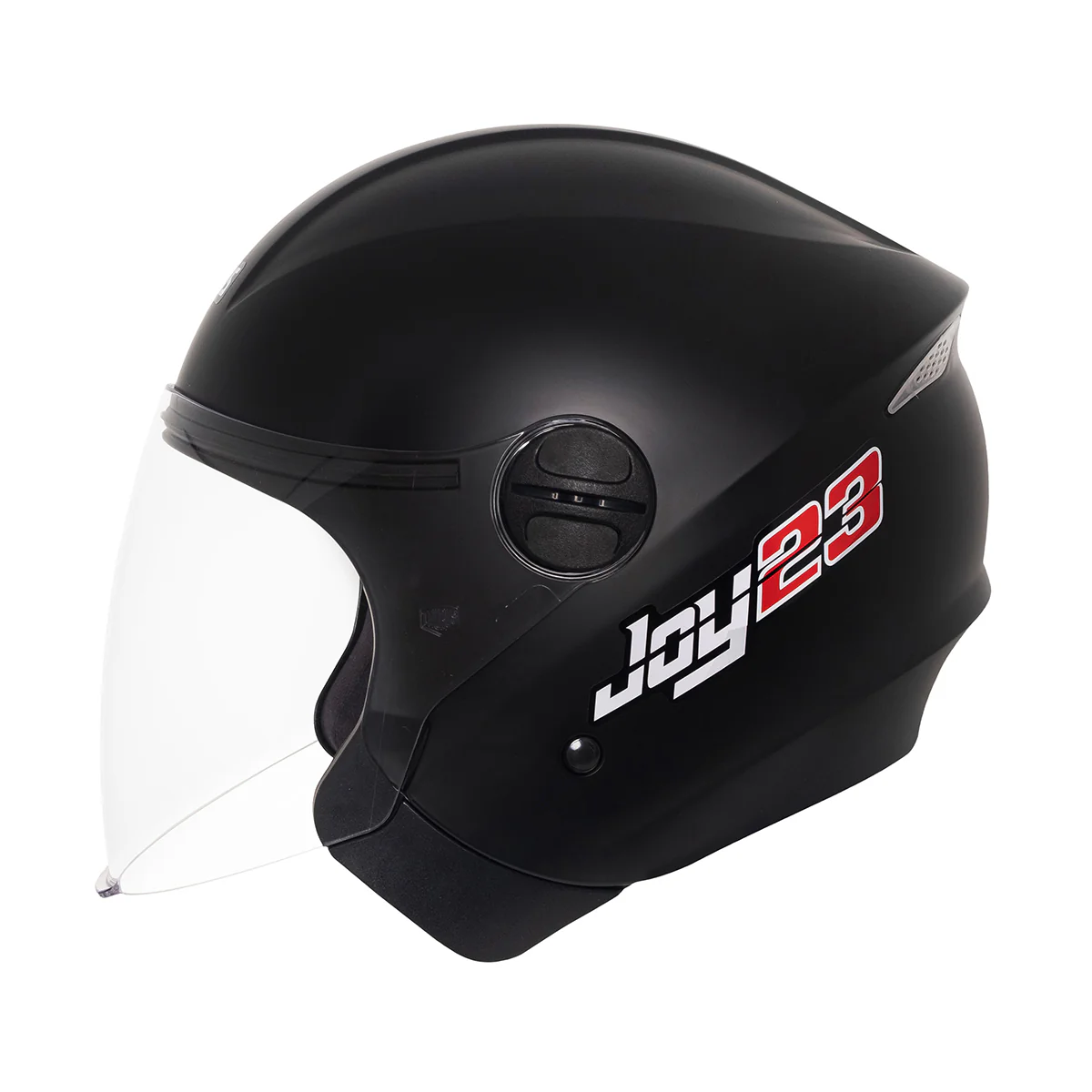 O Joy23 é um capacete aberto preto. Sua fabricação é artesanal e seu design exclusivo, com casco leve e compacto.